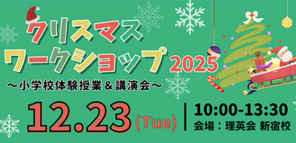 理英会新宿校では12月23日(火)、クリスマスワークショップ2025を開催します。