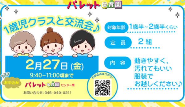 パレット保育園では、1月、2月も園での活動を知っていただける各種イベントを予定しております。